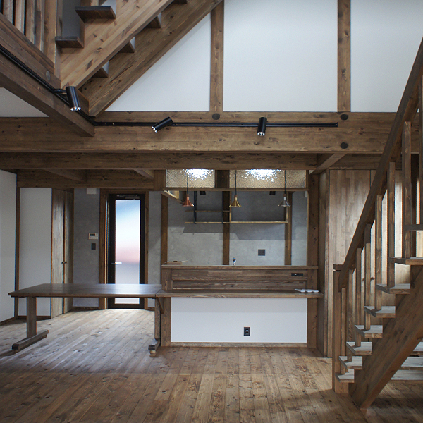塗り壁に柱と梁の構造美が映えるこだわりの木の家